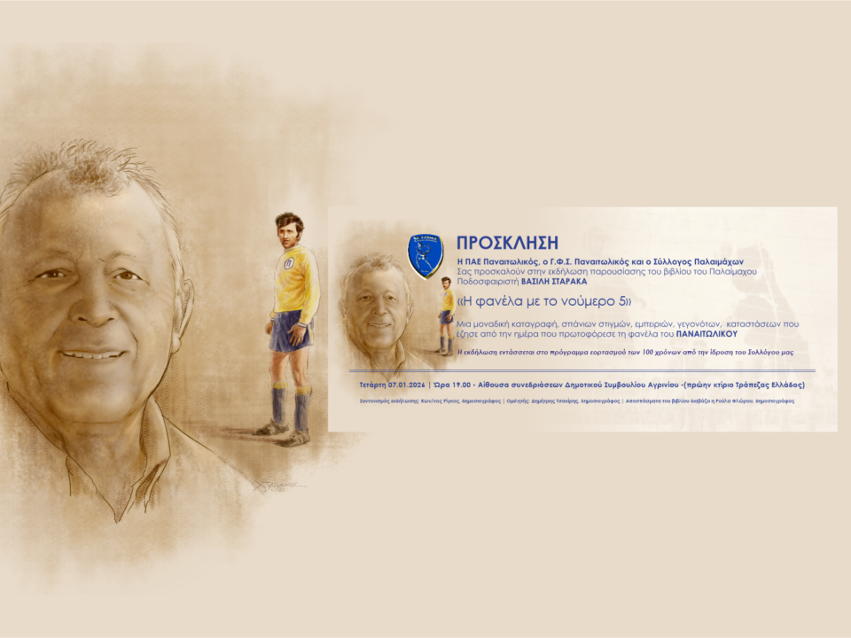 Η ΠΑΕ Παναιτωλικός ανέλαβε την έκδοση του βιβλίου «Η φανέλα με το νούμερο 5» που αποτελεί μια μοναδική καταγραφή βιωμάτων και αναμνήσεων του παλαίμαχου ποδοσφαιριστή Βασίλη […]